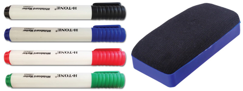 A csomag tartalma: 4 db táblafilc (fekete, kék, piros és zöld) és egy mágneses táblatörtlő